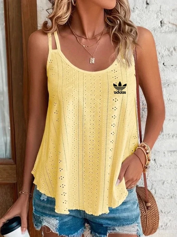 The Adidas – New Casual T-Shirt redefines casual sophistication with a breezy, effortlessly stylish look. Featuring a delicate eyelet design and double shoulder straps, this piece brings a fresh, feminine touch to any summer outfit. The soft white hue and flowy silhouette make it ideal for everything from beachside strolls to weekend brunches.