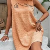 Crafted from a textured, lightweight fabric, this dress offers both comfort and breathability. Its sleeveless cut ensures freedom of movement, making it ideal for casual outings or summer getaways. The loose fit enhances its relaxed vibe.