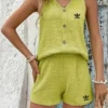 Crafted from organic polyester, this set provides a breathable, lightweight feel that keeps you cool and comfortable all day long. The fabric’s soft texture glides over the skin, while its moisture-wicking properties ensure freshness under the sun. Whether you’re on the go or taking it slow, this set moves effortlessly with your body.